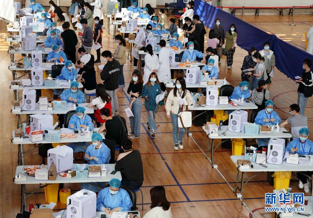 2021年3月28日,在華東師范大學閔行校區體育館內,師生們在接種新冠疫苗。新華社記者 劉穎 攝