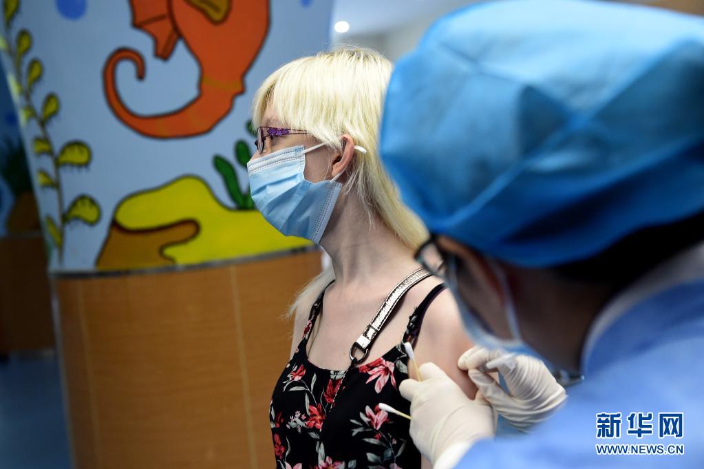2021年5月12日,在合肥市一處新冠疫苗接種點,醫務人員為外籍人士接種疫苗。新華社記者 黃博涵 攝