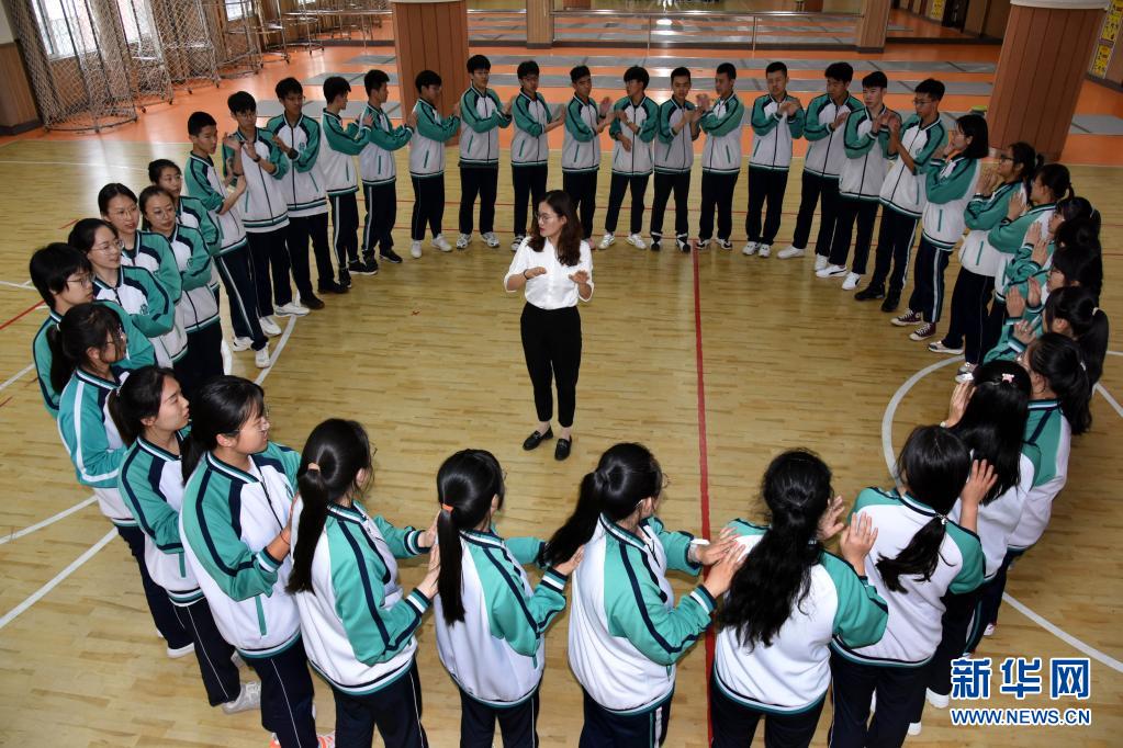 5月23日,青島通濟實驗學校高三學生在進行“激情節拍”游戲。