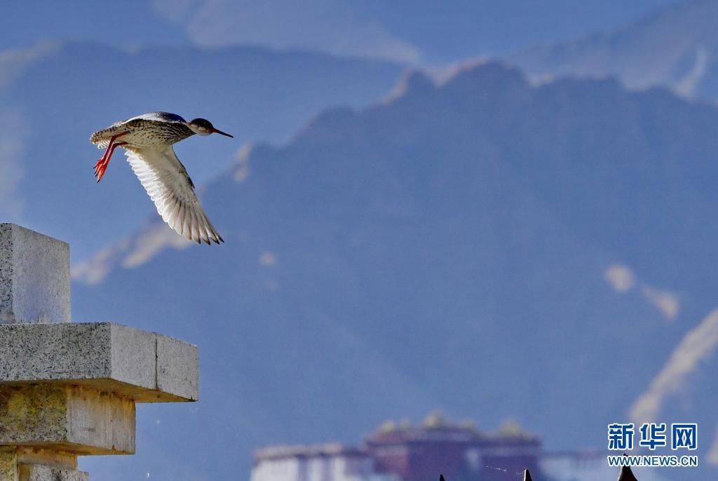 初夏,紅腳鷸在位于西藏拉薩的拉魯濕地國家級自然保護(hù)區(qū)內(nèi)起舞覓食。