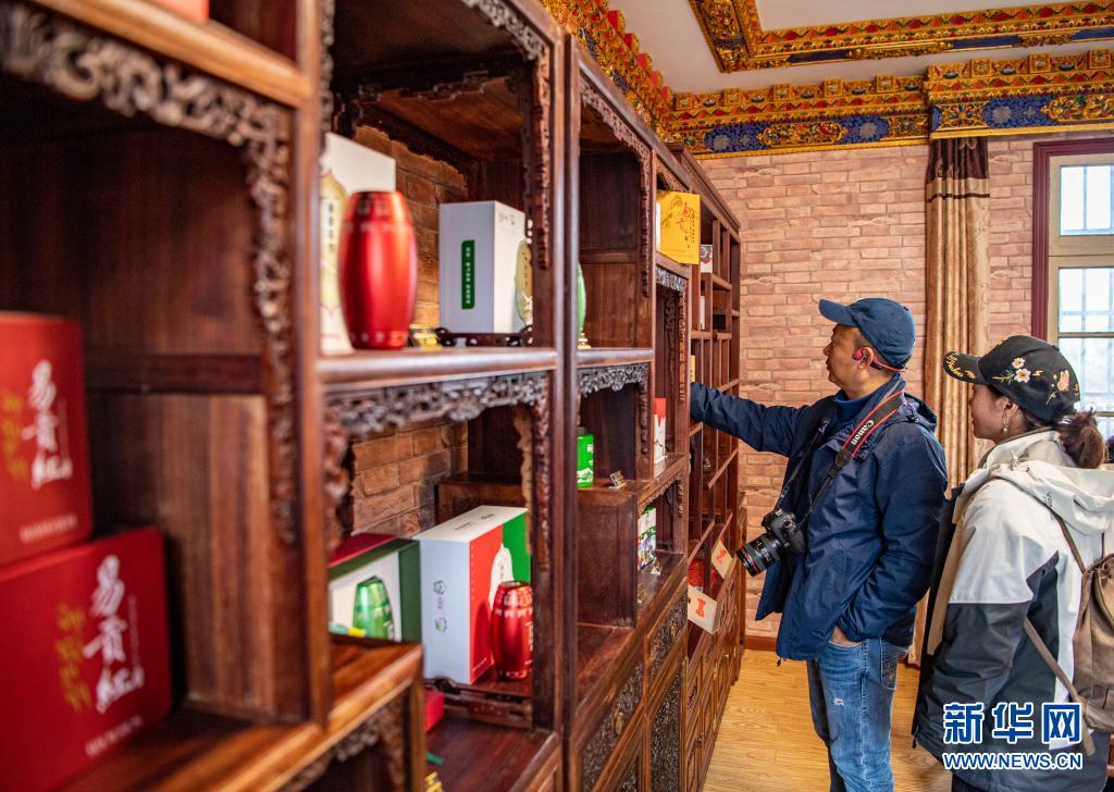 拉薩市北京路,崗堅(jiān)茶葉股份有限公司門店內(nèi),一些造型獨(dú)特、包裝各異的茶葉產(chǎn)品吸引著顧客。