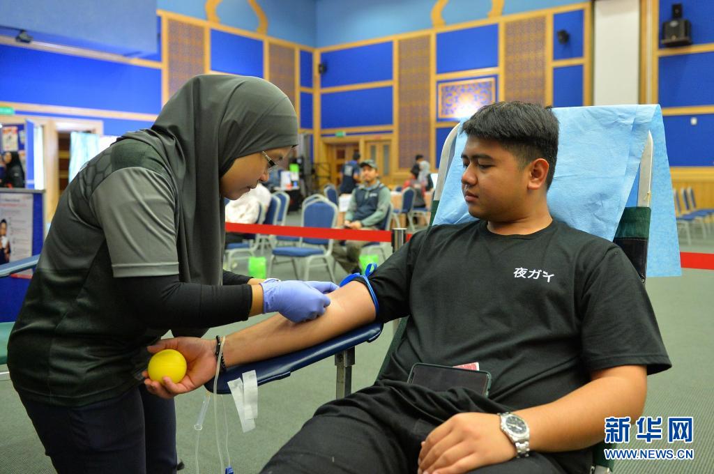 6月14日,一名男子在文萊斯里巴加灣市參與無償獻血活動。