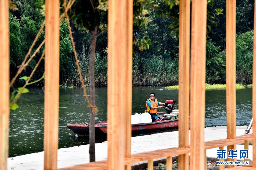6月20日,在微山縣南陽(yáng)鎮(zhèn),郵遞員王少朋駕駛郵船為柳溝村村民投遞郵件。