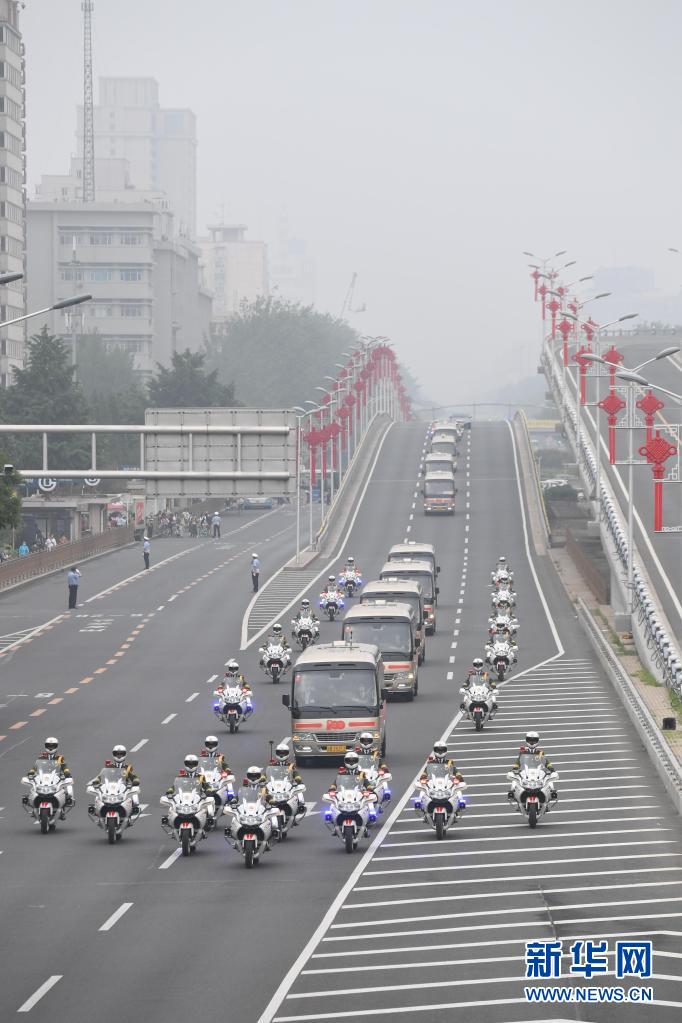 這是“七一勛章”獲得者集體乘坐禮賓車從住地出發,由國賓護衛隊護衛前往人民大會堂。