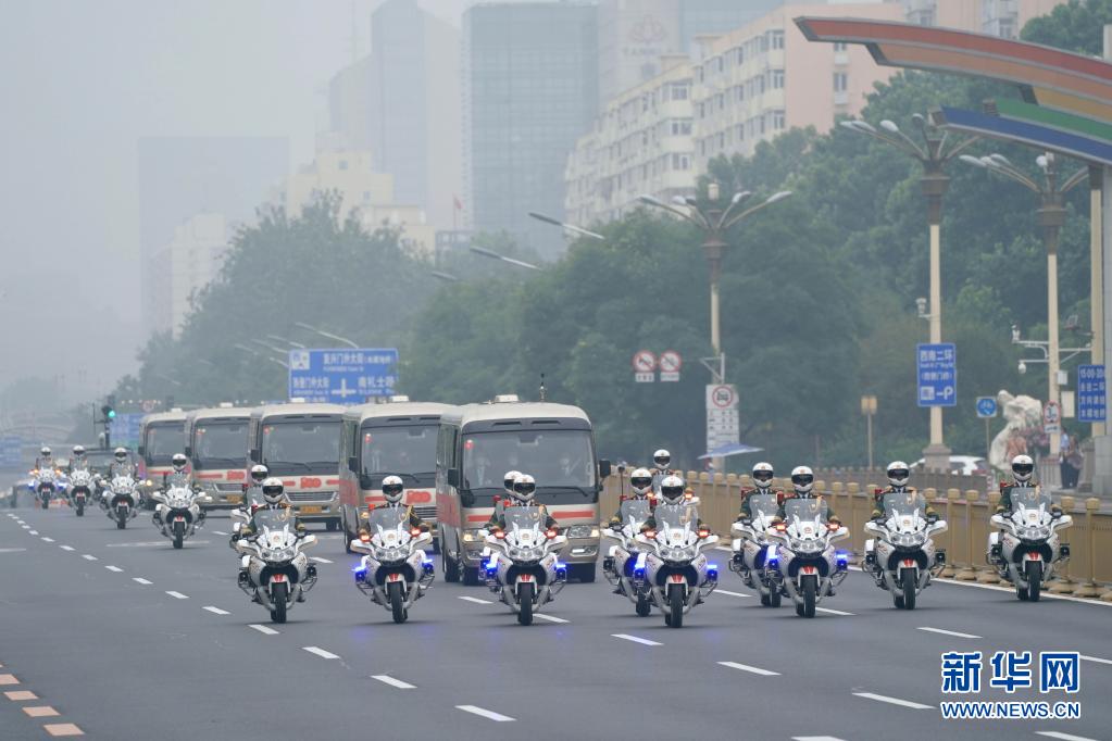 這是“七一勛章”獲得者集體乘坐禮賓車從住地出發,由國賓護衛隊護衛前往人民大會堂。