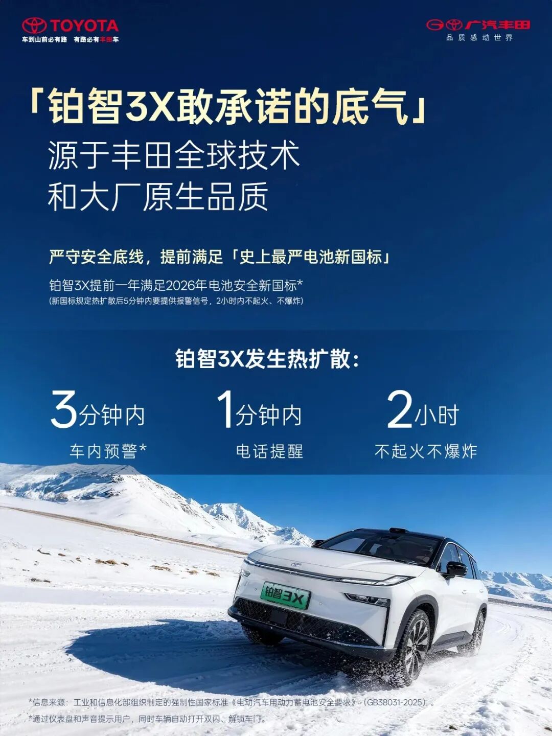 广汽丰田近日表示:铂智3X车型推出"三担责"承诺。厂家直接承担电池自燃责任、厂家直接承担智能泊车辅助事故责任、厂家直接承担电池衰减责任。