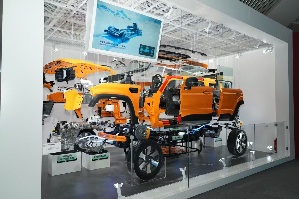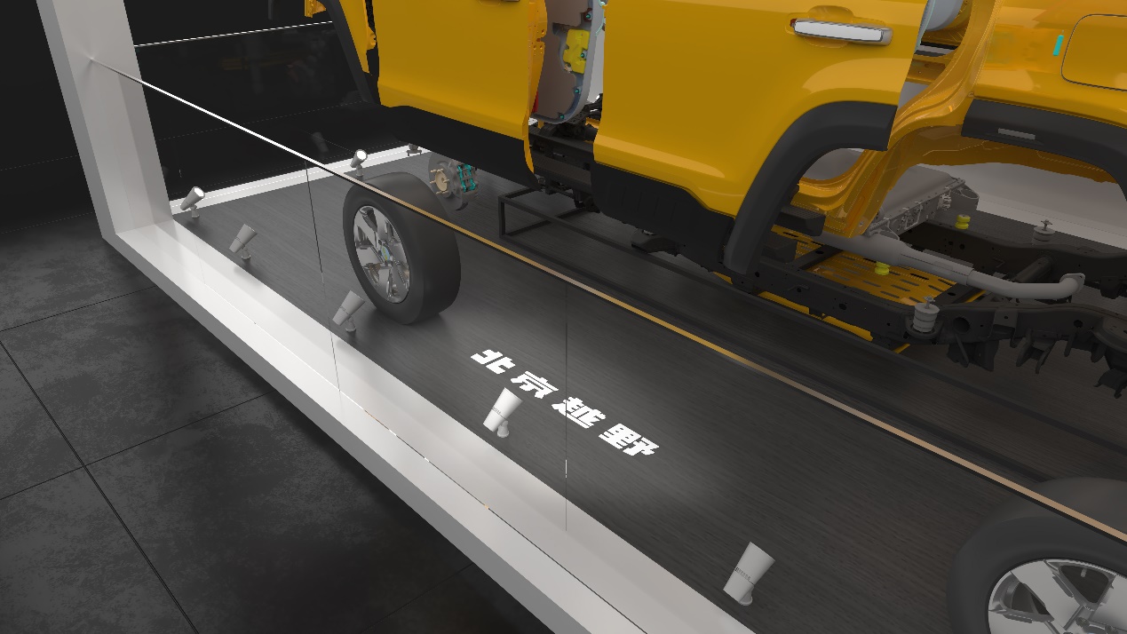 与传统的整车展示不同,BJ40增程解构车采用“整机与零部件功能关联”的创新形式,将底盘、悬挂、四驱系统、增程器等核心模块进行全方位拆解展示。这种“裸眼可见”的机械结构与协同逻辑,不仅满足了专业观众对技术深度探究的需求,更让大众直观感受到硬派越野“金字塔尖”的制造精髓。