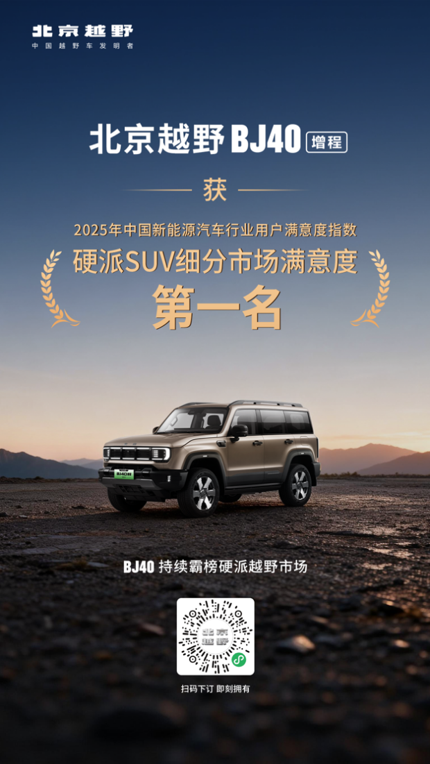 销量攀升的背后是品质的支撑。在中国质量协会2025年NEV-CACSI中国新能源汽车行业用户满意度指数测评中,BJ40增程荣获硬派SUV细分市场满意度第一;同时,北京越野品牌还获评“市场质量信用AAA企业”,品质实力再获权威认证。