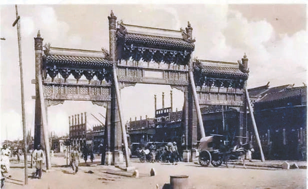 1900年,东四路口“履仁”牌楼东向。