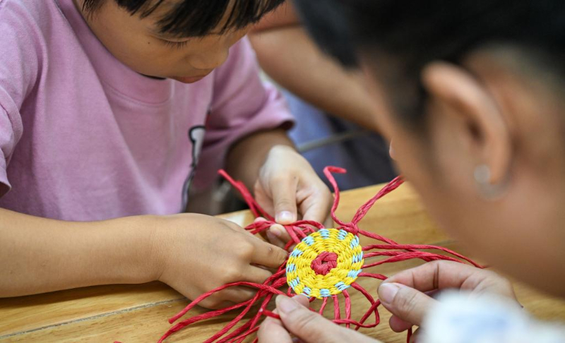 10月12日,不少家庭来到位于海口的海南省文化馆“海文学堂”,在非遗传承人指导下体验东山草编技艺,通过完成传统手工艺作品学习非遗知识、理解文化内涵,在互动中感受传统文化魅力。东山草编技艺是海南省海口市秀英区东山镇的传统手工技艺,入选第六批海南省级非物质文化遗产名录。