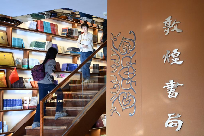 10月11日,游客在敦煌书局参观游览。