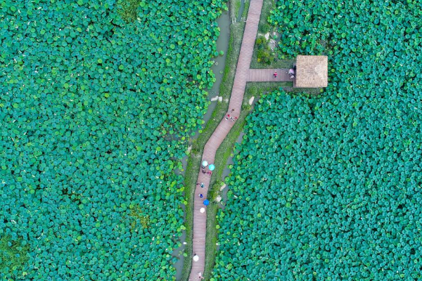 图为杭州市临平区运河街道新宇村千亩荷塘