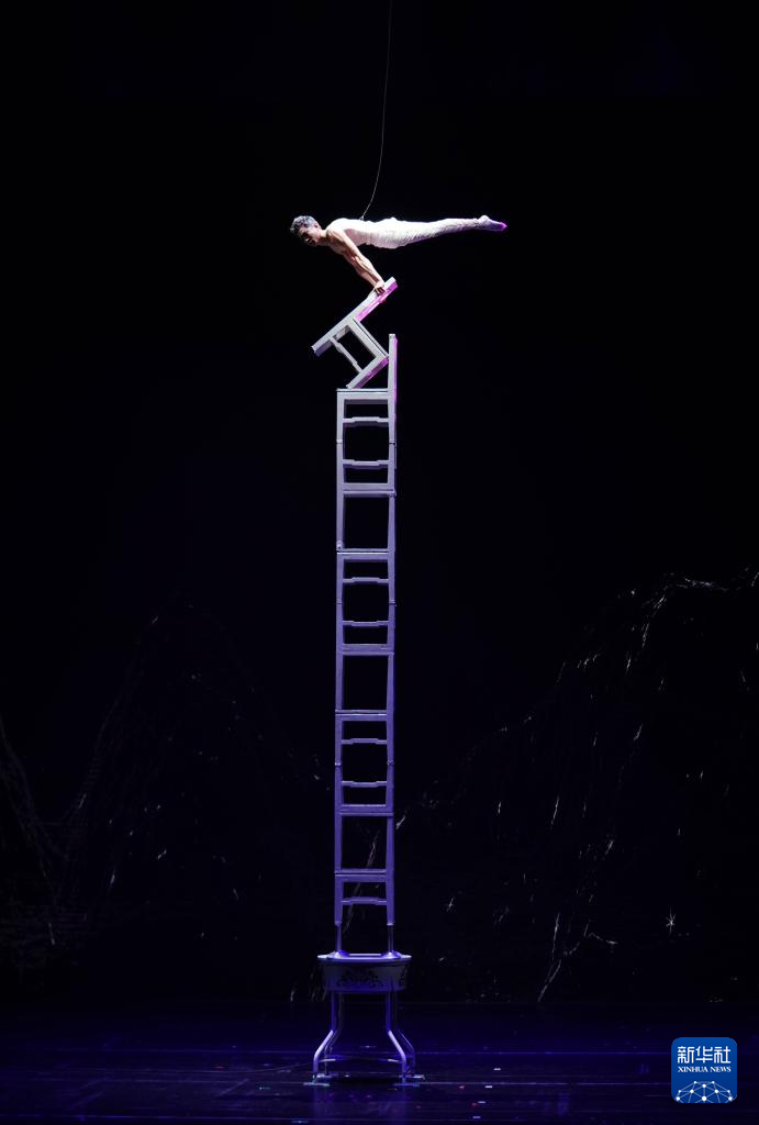 3月21日,在位于山东省济南市的山东省会大剧院,演员表演杂技节目《山之魂——高椅》。