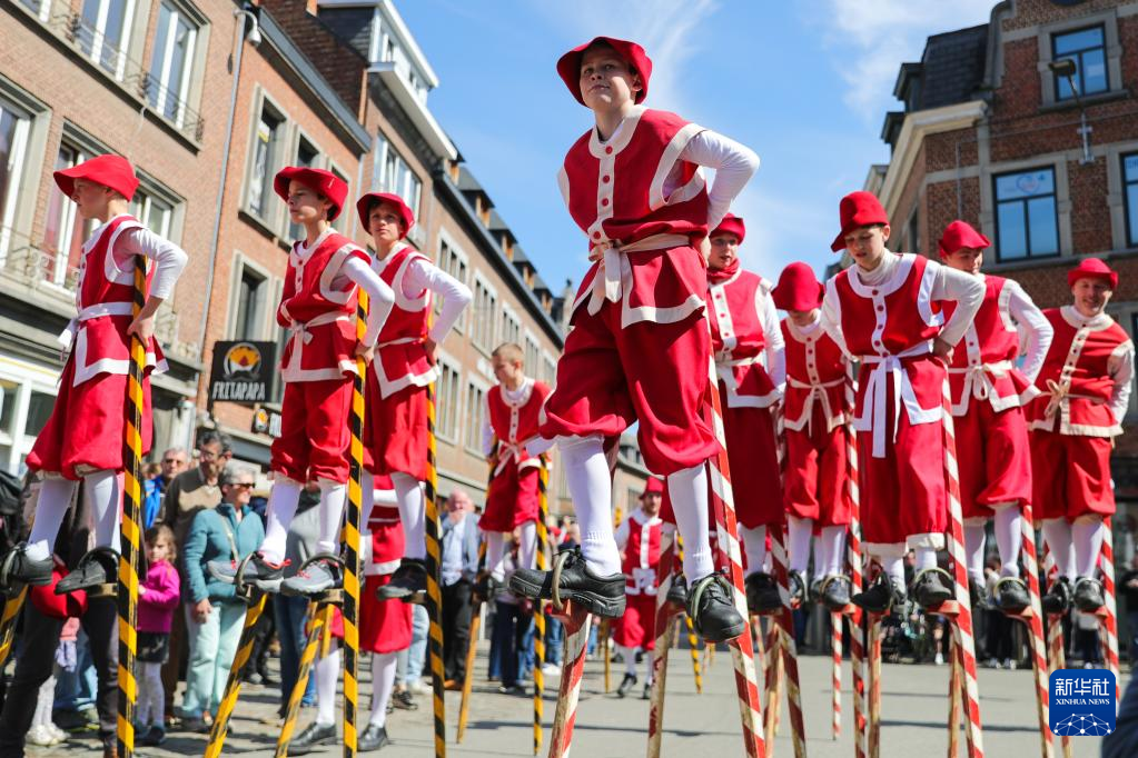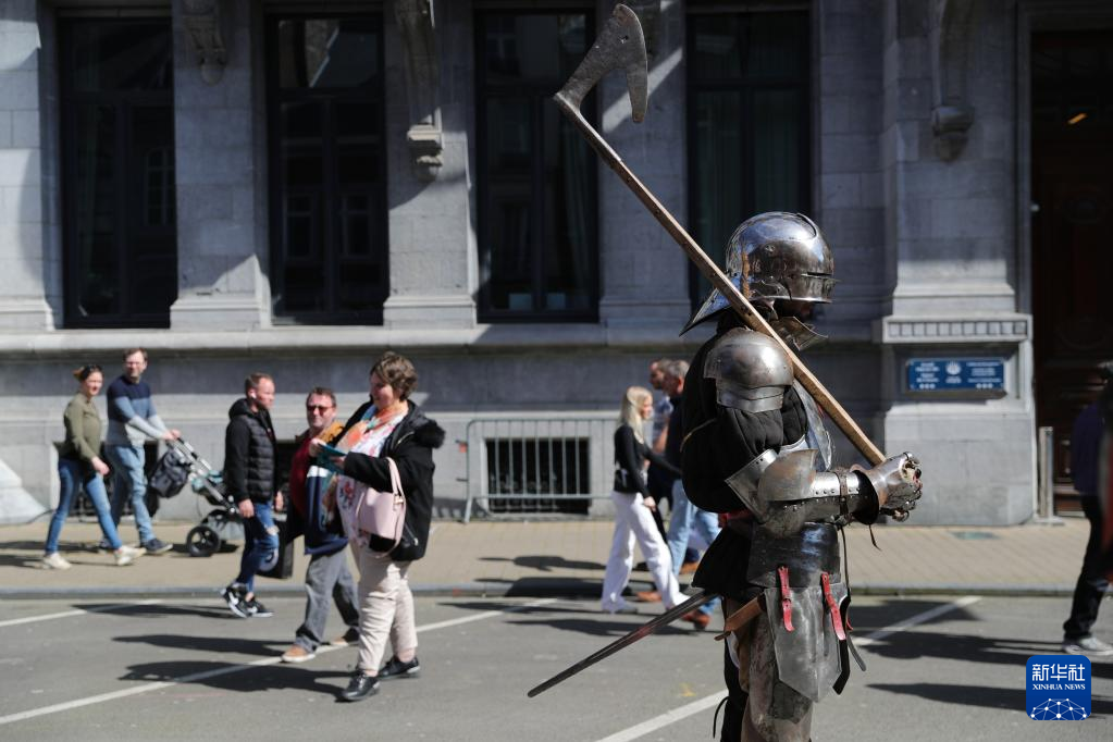 4月15日,演员在比利时那慕尔市传统民俗日活动上表演。