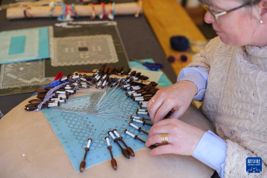 4月15日,一名手工艺人在比利时那慕尔市传统民俗日活动上制作蕾丝。