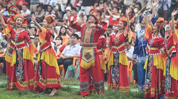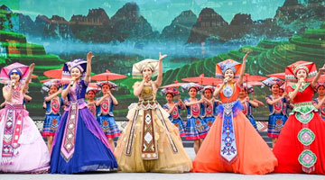 4月22日,在中国—东盟(南宁)非物质文化遗产周开幕现场,演员在表演少数民族歌舞。