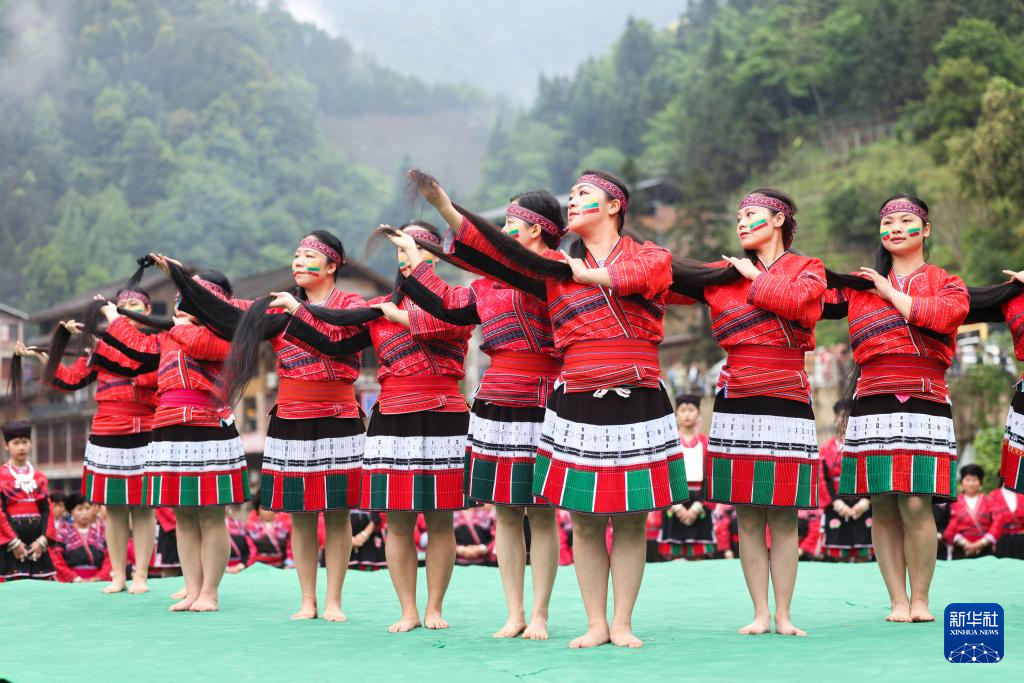当日是农历三月初三,广西桂林市龙胜各族自治县黄洛瑶寨举行“三月三龙脊长发节”活动,吸引游客前来参观游览。黄洛瑶寨的红瑶族妇女有世代相传的蓄发习俗,平均头发长度达1.7米,最长的有2.72米。
