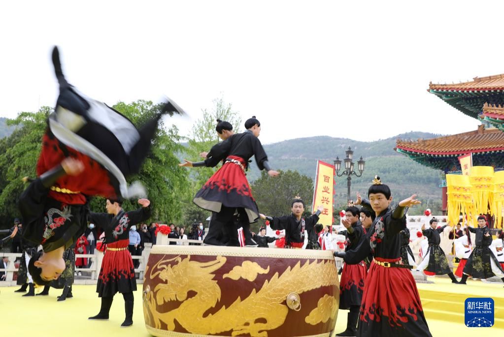 4月25日,在山东沂山风景区,演员在祀山大典上表演“乐舞”。