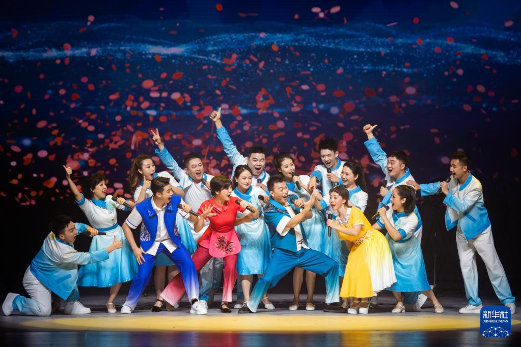 5月10日,演员在舞台上表演节目《太阳晒在山坡坡》。