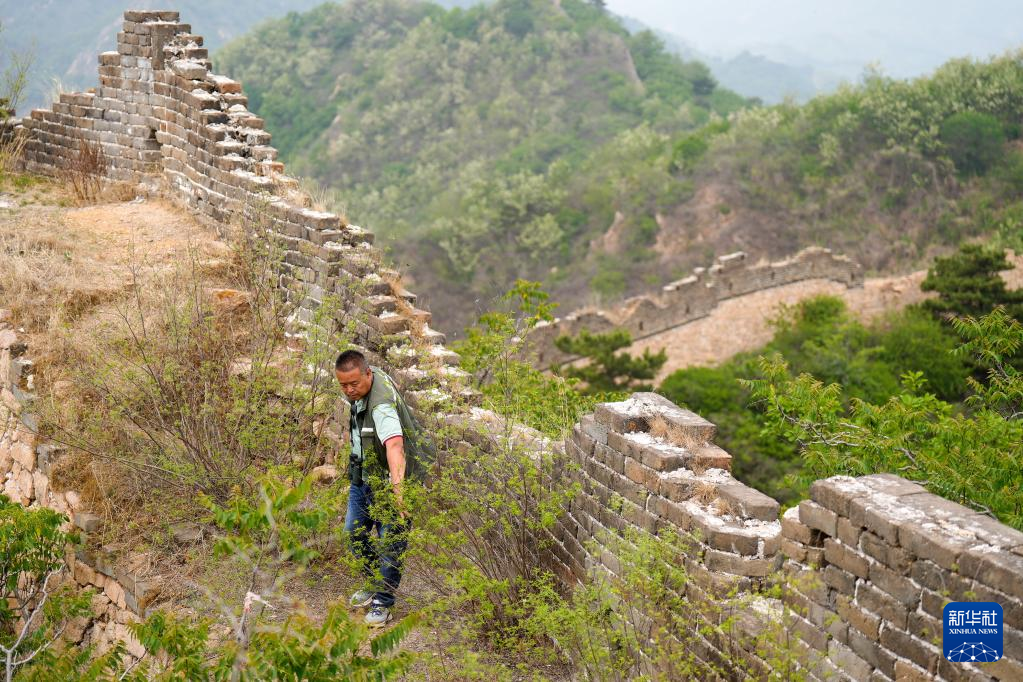 5月13日,赵春生在前后杖子段长城上清理垃圾。