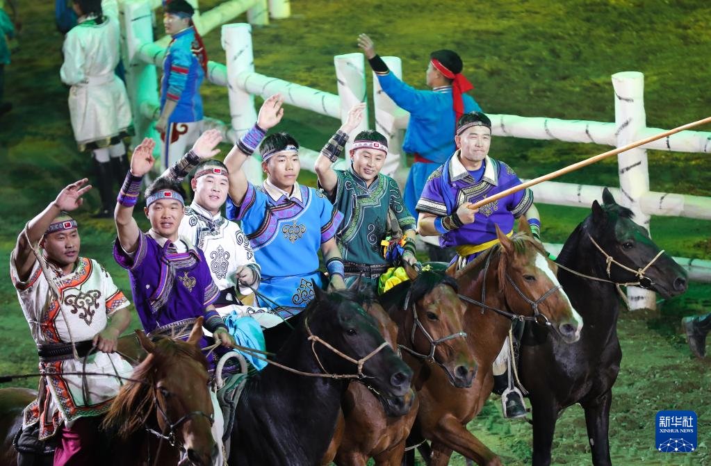 当日,由内蒙古民族艺术剧院出品的2023年大型马舞剧《千古马颂》在呼和浩特上演。该剧以马术表演为主,综合运用了舞蹈、器乐、杂技等艺术元素,融合了现代高科技舞台技术,以全新艺术形式生动演绎了人与马相遇、相识、相伴、不离不弃、生死与共的情感历程,体现了人、马与自然和谐共存的精神。