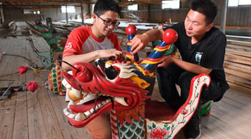 6月19日,在河北省邯郸市广平县第四幼儿园,小朋友在家长的帮助下学习包粽子。