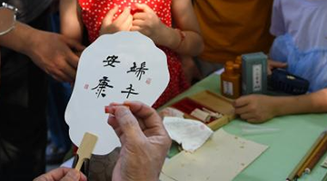 6月27日,与会嘉宾在第十四届夏季达沃斯论坛文化之夜现场了解天津非遗项目。