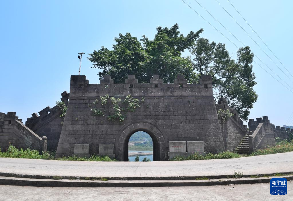 这是6月27日拍摄的神臂城东门。东门是宋元两军争夺的焦点,东门城楼已毁,现存石砌双拱门硐保存完好,与两侧城墙连成一体。