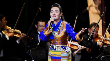 7月21日晚,游客在夜间“那达慕”大会上品尝奶茶。
