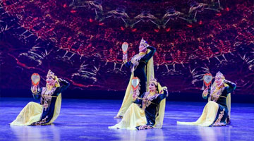 7月31日晚,在新疆人民剧场,土库曼斯坦国家舞蹈团演员在演出。