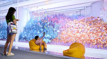 8月20日,小朋友与家长观看“福尔摩斯大型沉浸式主题展”。