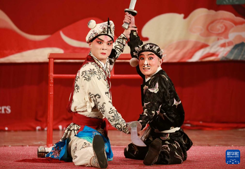 9月9日,婺剧演员在埃塞俄比亚首都亚的斯亚贝巴表演《三岔口》。