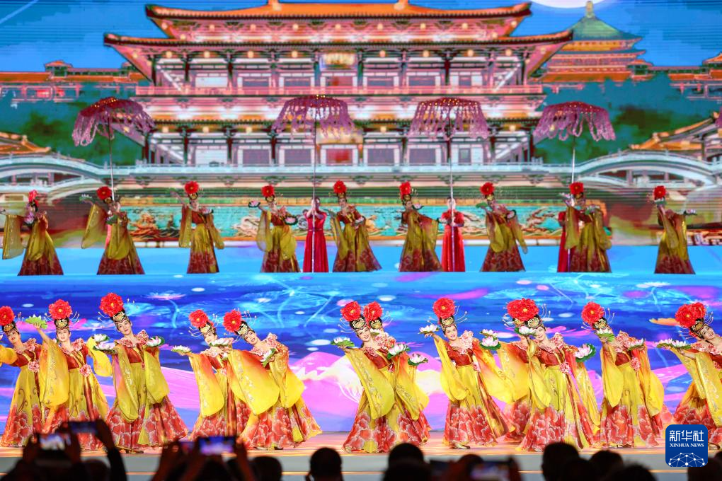 演员在表演歌舞节目《天山共明月》(9月12日摄)。