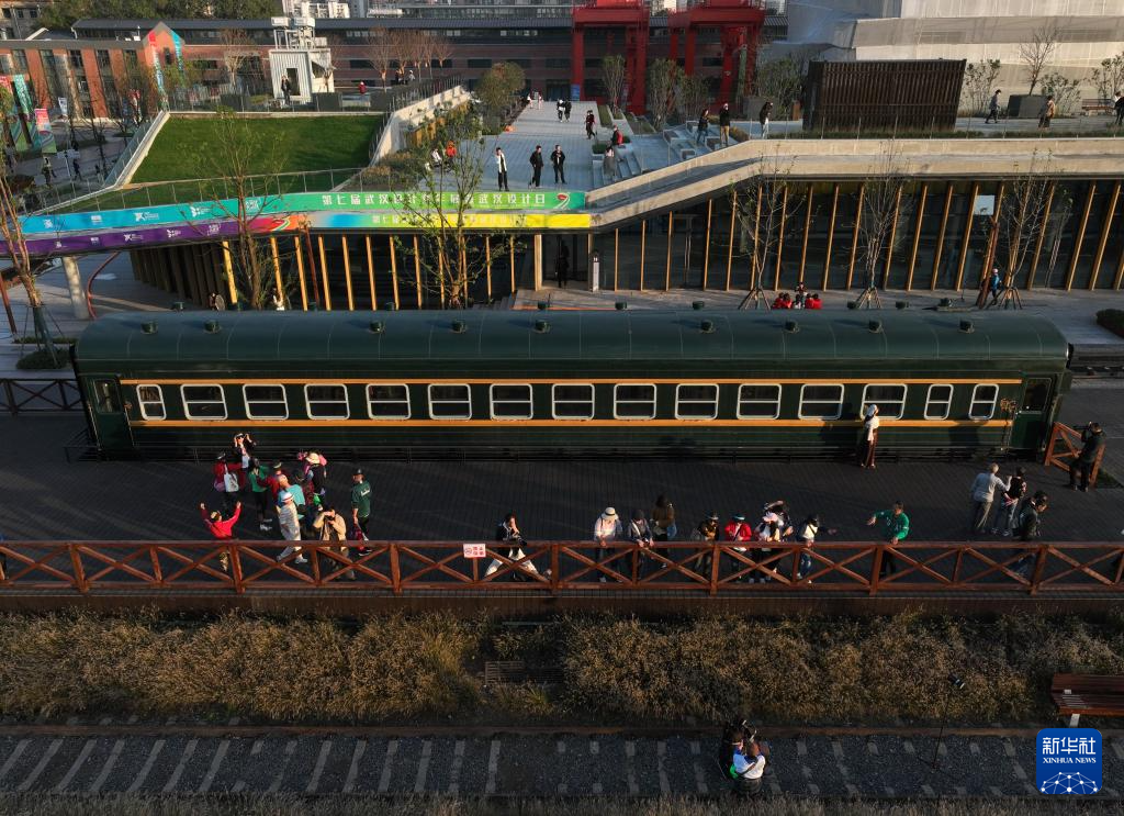 11月6日拍摄的武汉市武昌四美塘铁路遗址文化公园(无人机照片)。