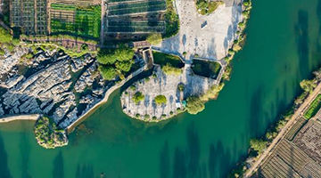 11月11日,摆手舞队伍在湖北省来凤县城武汉大道上表演(无人机照片)。