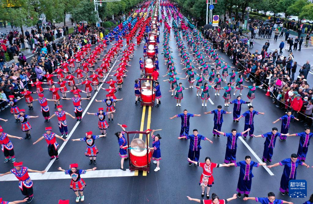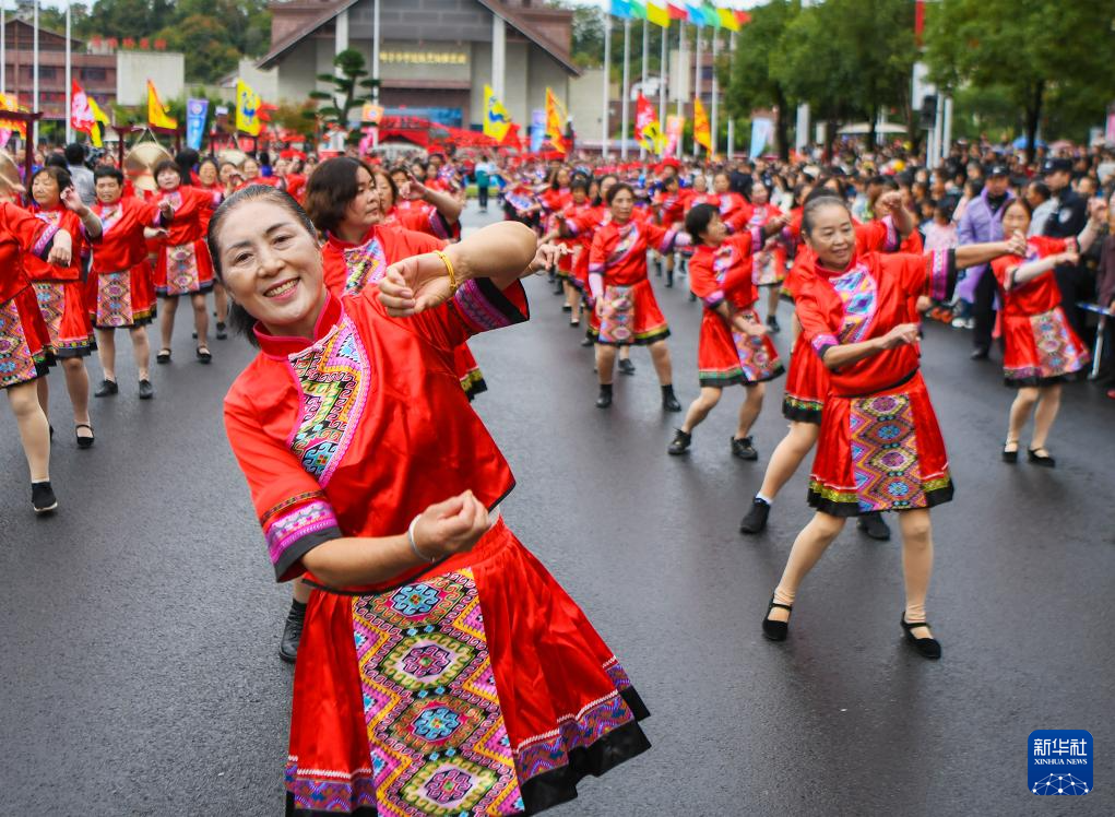 当日,湖北省恩施土家族苗族自治州来凤县举办第三届土家摆手舞文化节,吸引来自贵州、湖南、湖北、重庆等省市的千余名摆手舞爱好者参加展演、巡游等活动,向市民和游客展示土家非遗摆手舞的独特魅力。