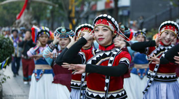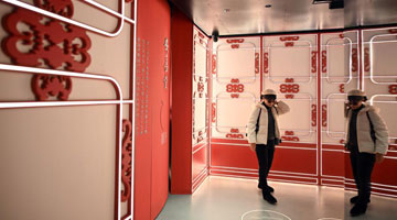 12月21日,乌兰牧骑队员在阿其图乌拉苏木演出过程中和牧民互动。
