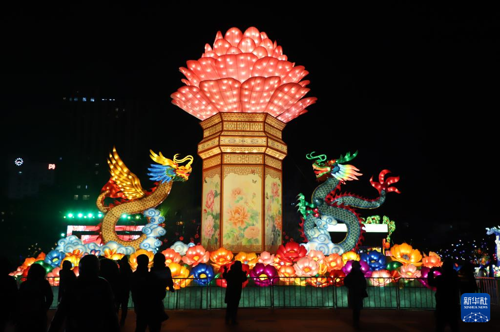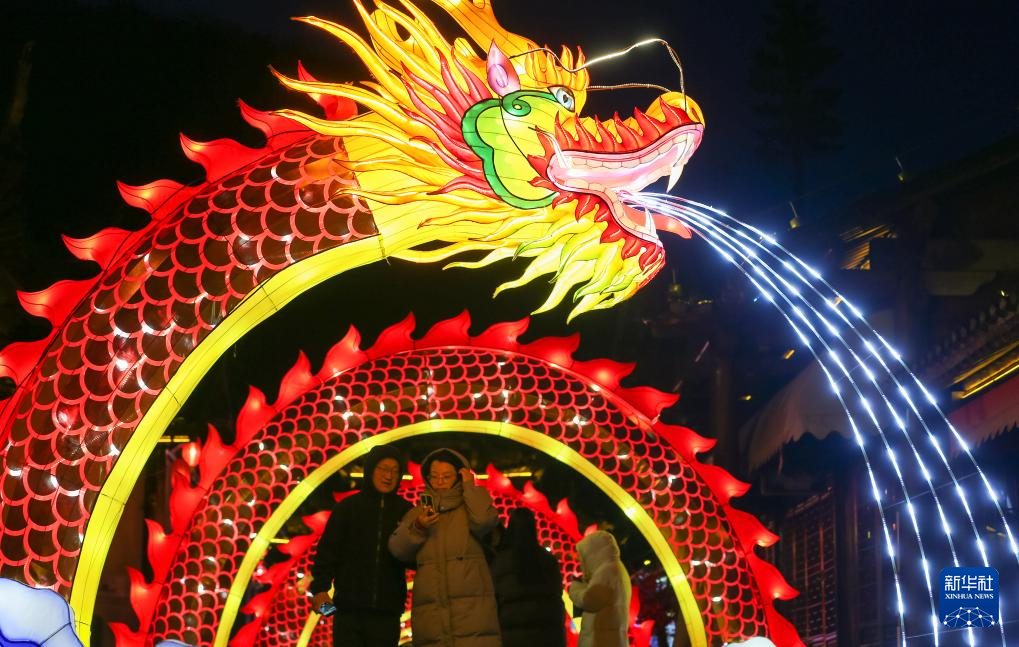 1月21日,人们在江苏省镇江句容市宝华山国家森林公园观赏生肖龙彩灯。