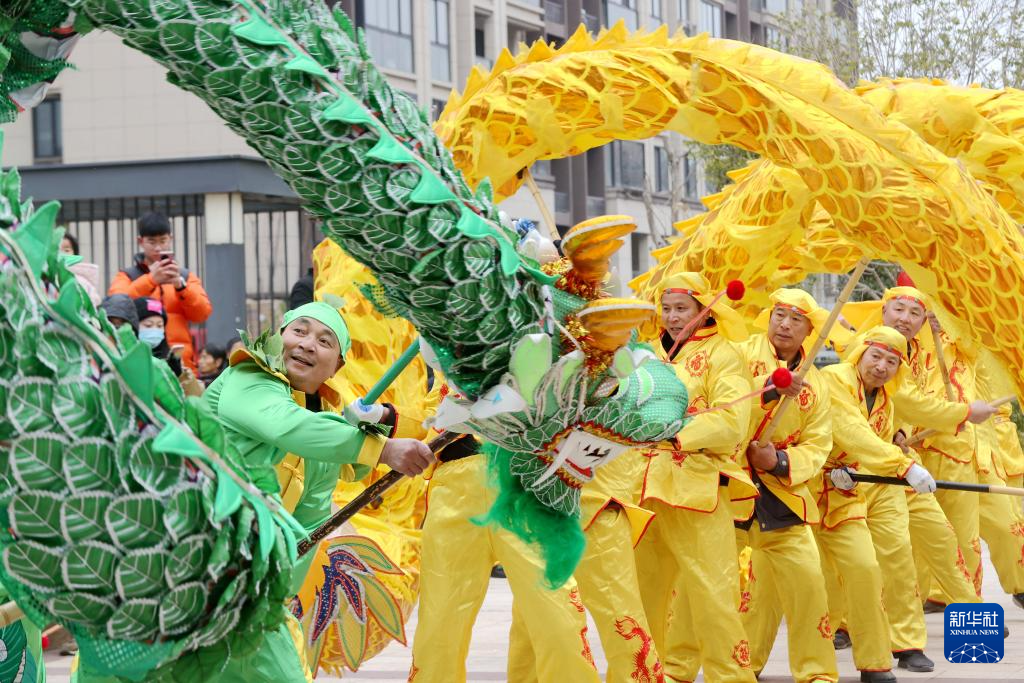 1月21日,浙江省湖州市德清县康乾街道金鹅山村村民在表演舞龙。