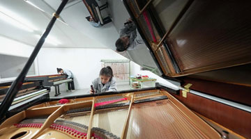 1月20日,中国江苏省杂技团演员王梦尘在摩纳哥蒙特卡洛表演节目《炼——倒立技巧》。