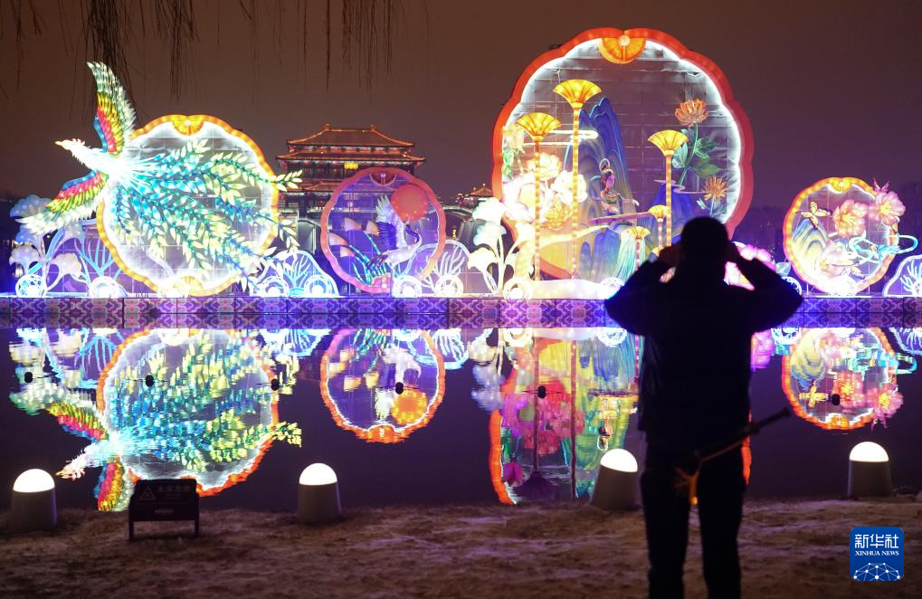 2月2日,游客在西安大唐芙蓉园内观赏大型花灯。