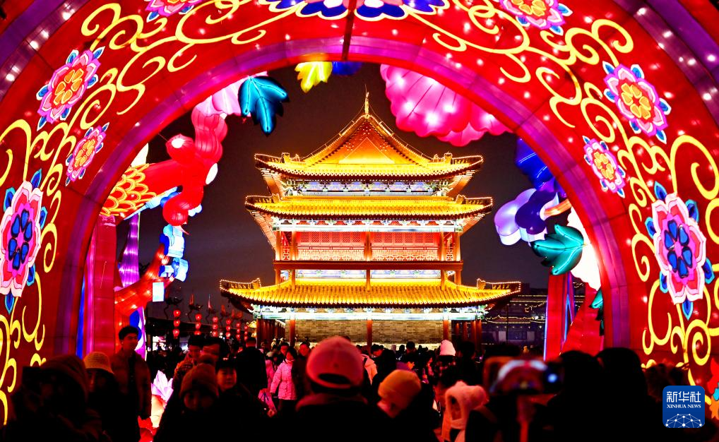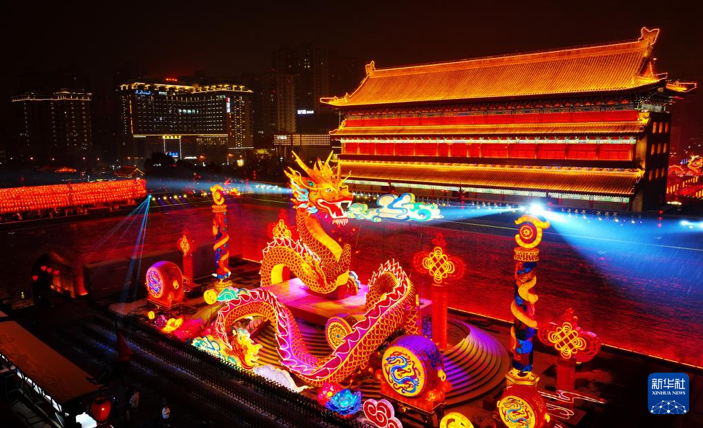 这是2月2日拍摄的西安城墙新春灯会现场(无人机照片)。