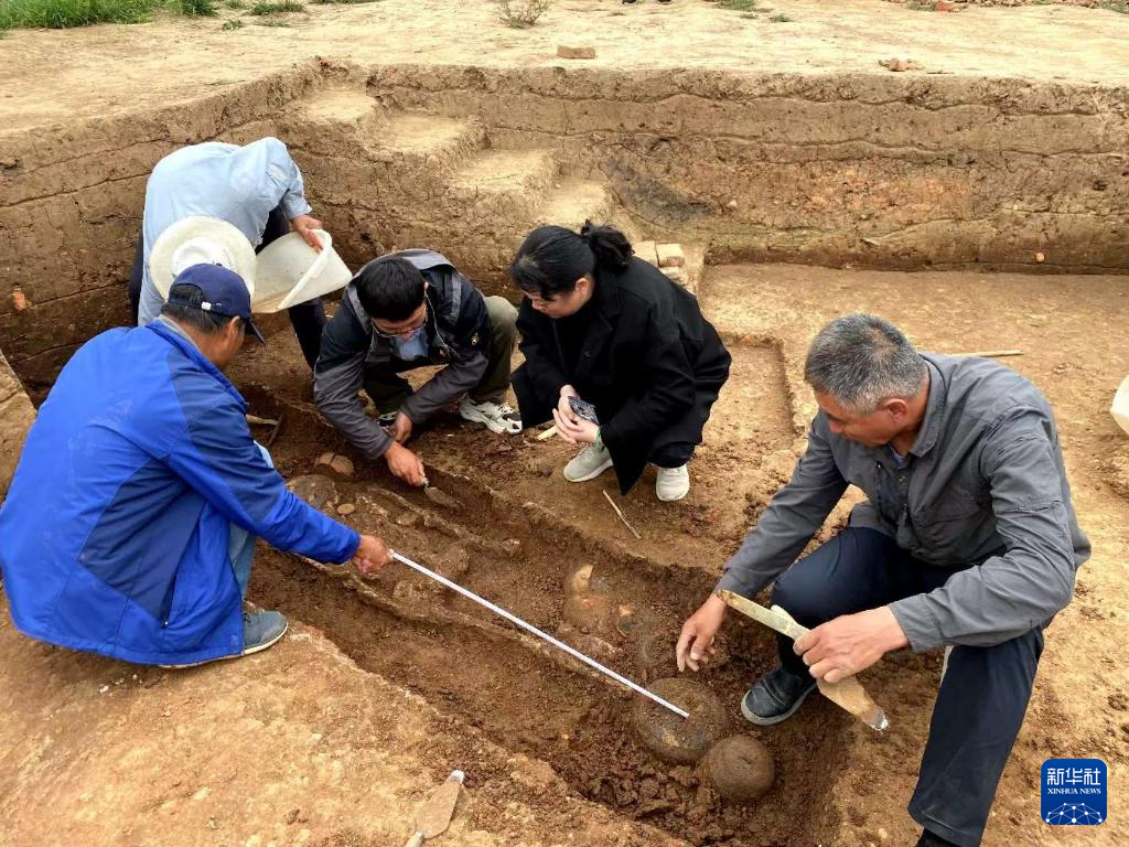 2023年4月22日,考古人员在磨盘山遗址进行墓葬清理。