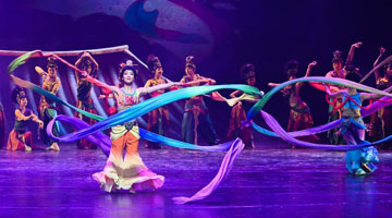 3月25日晚,湖南张家界《魅力湘西》艺术团的演员在表演节目。