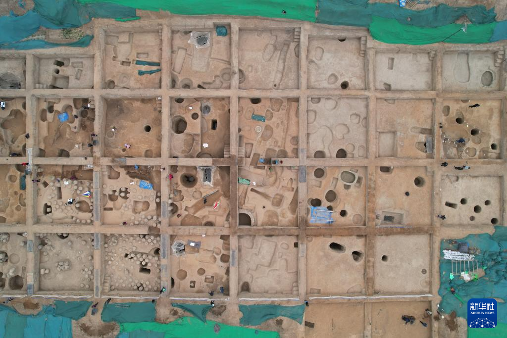 这是2022年3月3日拍摄的郑州商都书院街墓地发掘现场(无人机照片)。