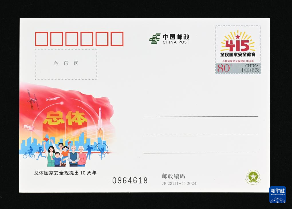 这是中国邮政于4月15日发行的《总体国家安全观提出10周年》纪念邮资明信片。