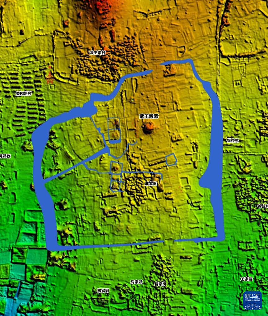 这是位于安徽省淮南市的武王墩墓考古发掘现场(2024年4月15日摄,无人机照片)。