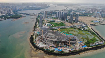 湛江文化中心三面环海,包括大小剧院、美术馆、博物馆等功能区域,建成后将成为湛江文化新地标。