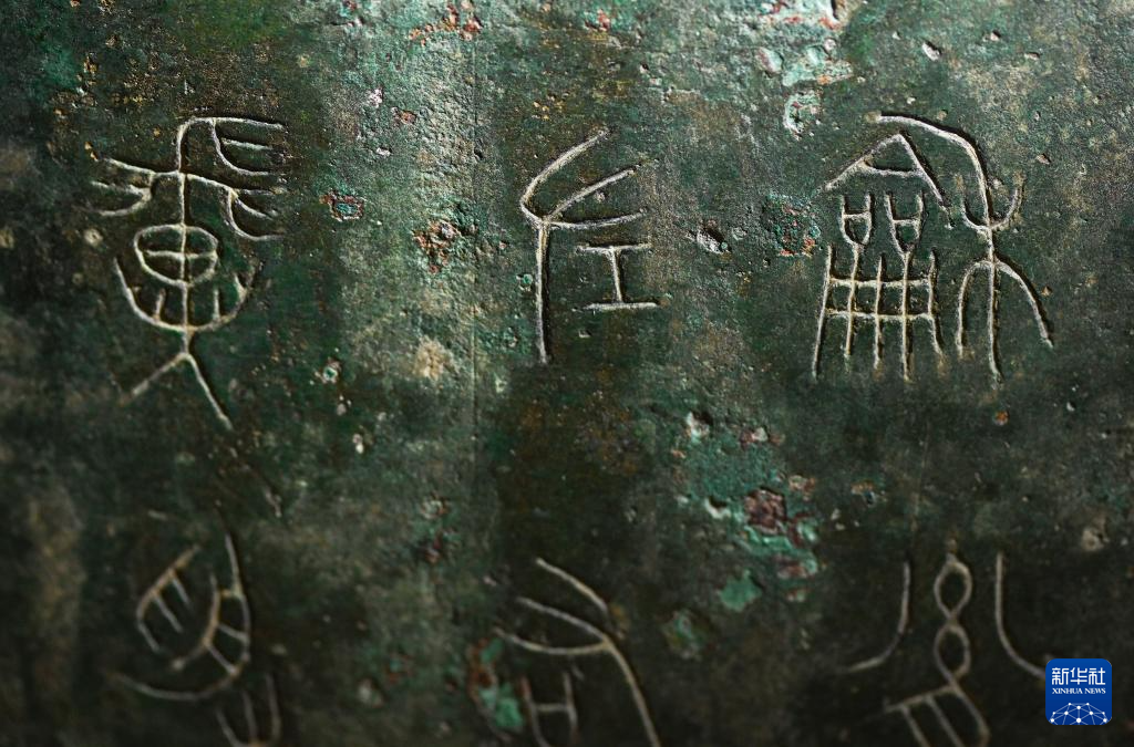 秦公镈(一号镈)铭文“或(国)”字(左上)(2024年1月23日摄)。
