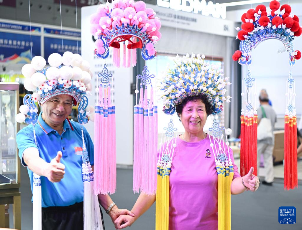 5月23日,参观者在第二十届文博会福建馆体验簪花。